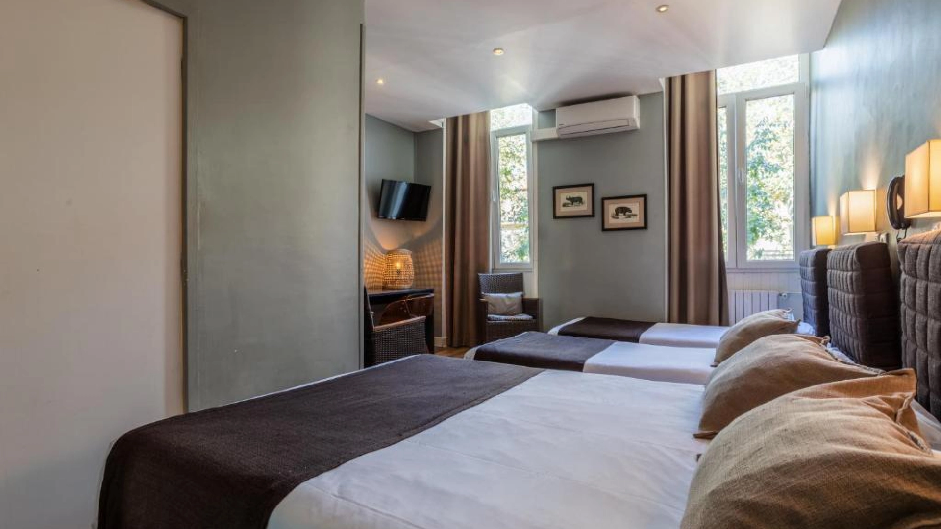 Cada habitación también dispone de un baño privado con ducha o bañera. Luminosas y tranquilas gracias a los cristales dobles, estas habitaciones con vistas a la ciudad o al jardín, situadas del 1.º al 3.º piso, son perfectas para relajarse después de un día explorando Marsella.
